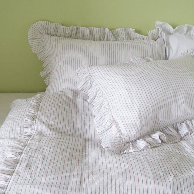 ネイビーとレッドのピンストライプが入った、上質なフレンチリネン100%生地を