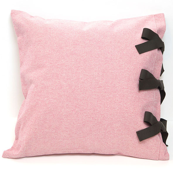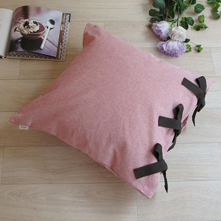 canvas plain クッションカバー ribbon SQ ピンク×チョコレート